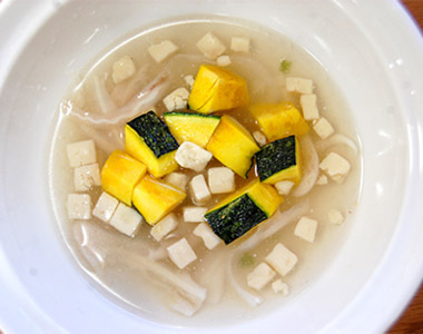步驟3:將豆腐及南瓜塊放入豬骨湯中,並將豬骨湯稍微溫熱即可